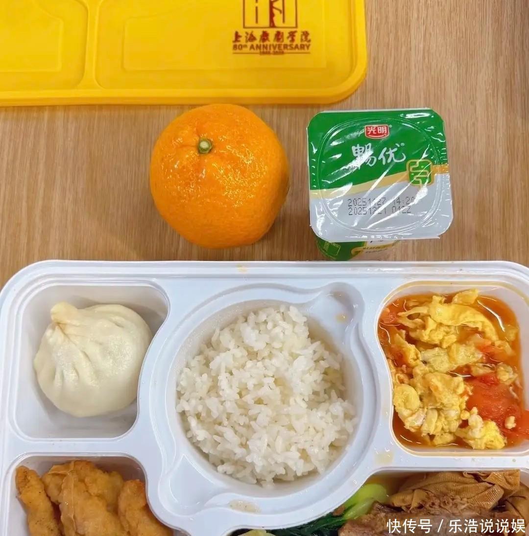 母校为返校的学子们准备了简单的盒饭,大家围坐在一起边吃边聊,氛围轻松愉快。杜若溪特意晒出了盒饭的内容:三个菜、两个主食,分量十足。其中白色的梅干菜包子,更是勾起了无数回忆——“这就是我们当年最爱吃的味道!”更贴心的是,学校还为减肥的女艺人准备了酸奶和橘子,不能吃盒饭的也可以拿别的垫肚子。这份周到,让不少网友感叹:“母校永远是母校,连孩子的口味都记得!”