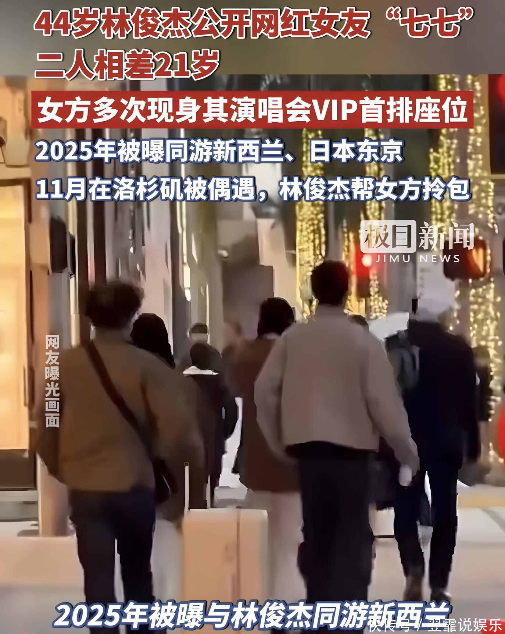 11月时,又被拍到一同出现在洛杉矶的街道上。照片中,两人同穿美拉德色系大衣。款式类似,疑为精心搭配的情侣装。而且林俊杰,还帮七七拎着包。一时间,这段恋情疑似实锤。