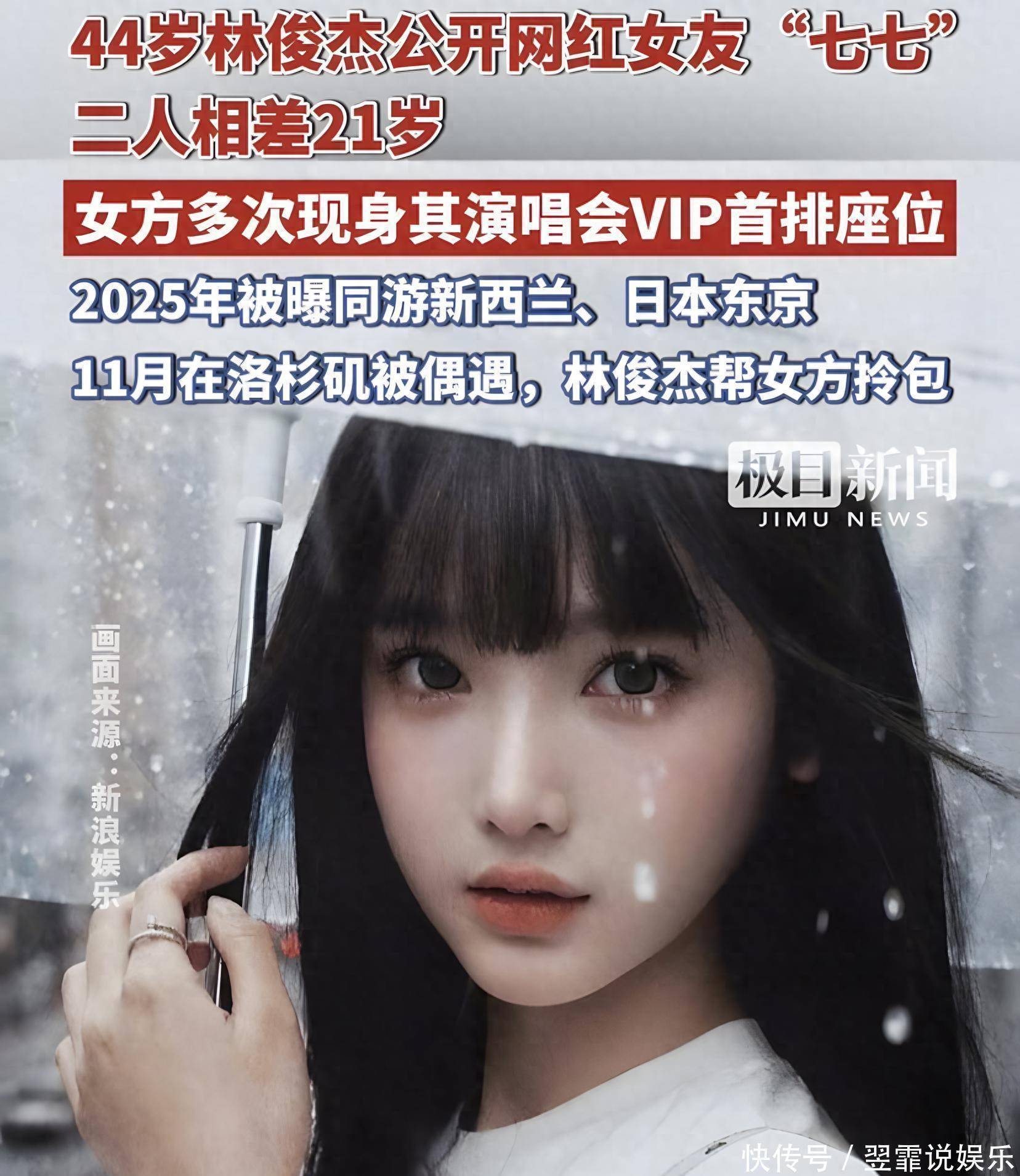 除去家境外,网友讨论度最高的无疑就是两人的年龄差。林俊杰出生于1981年,现年44岁。七七出生于2002年,现年23岁。林俊杰足足比七七大出21岁,年龄差几乎和七七的年龄差不多。